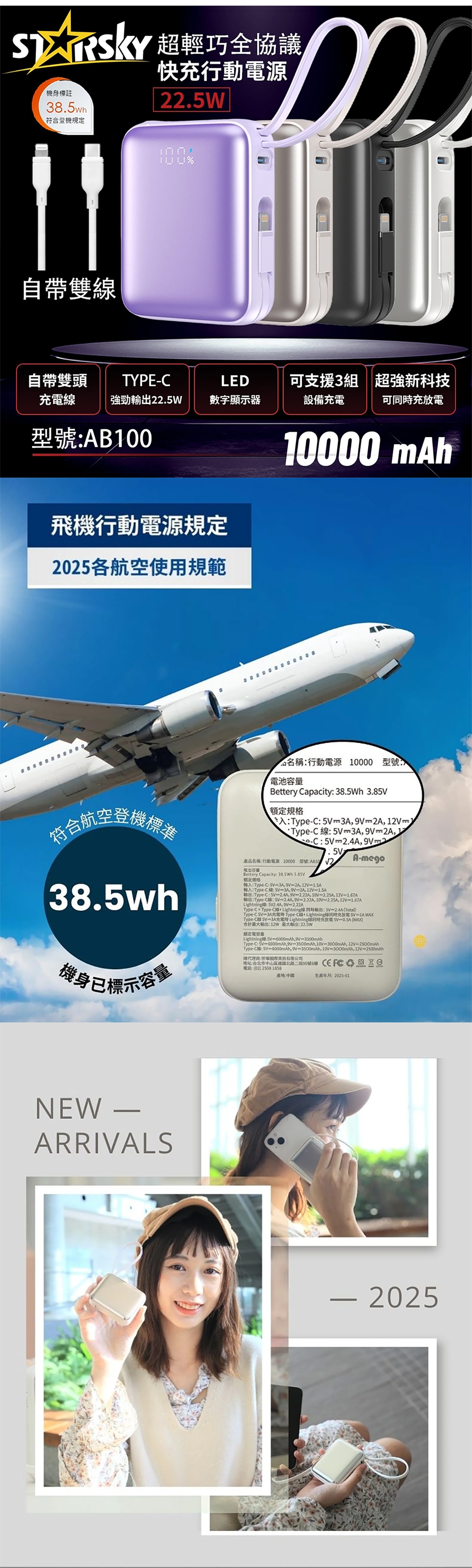 25分鐘前【🎁雙十二聖誕狂歡慶】A-mego AB100 MINI-2 超輕巧自帶雙線行動電源, 可支援3組設備充電,超輕巧187g,LED數字顯示器,適用各種裝置 蘋果筆電,手機平板,遊戲機,風扇,連接20W以上充電器可同時充放電 - 【🔥雙12限時開團】STARSKY 掌心美型自帶雙線快充行動電源✨加碼再送掛繩充電線 1入組僅需NT$1080