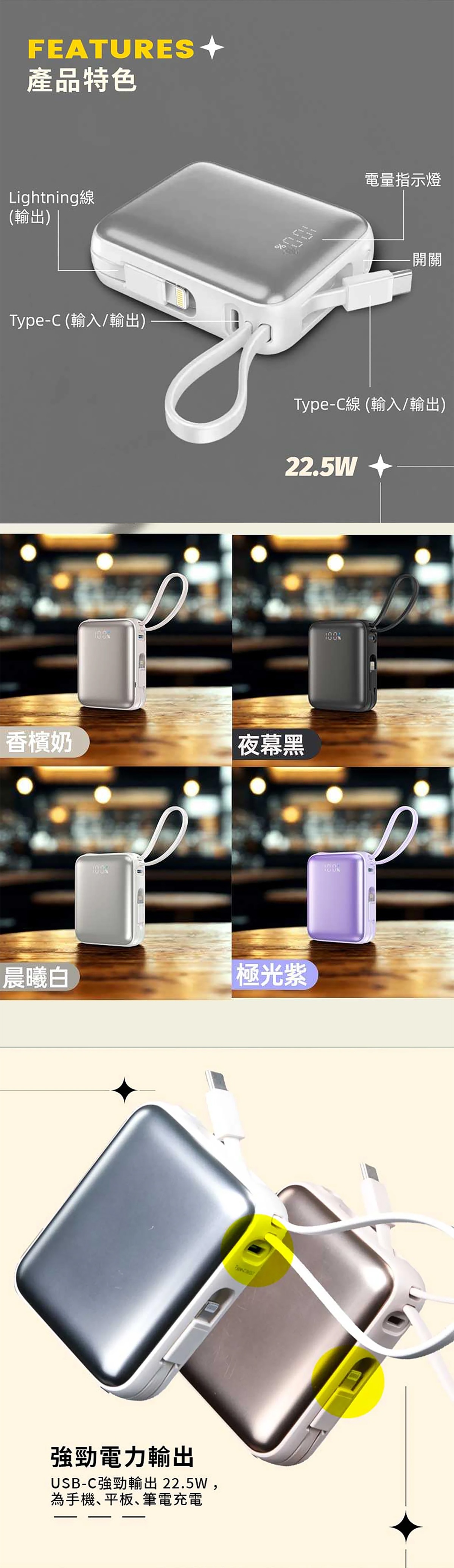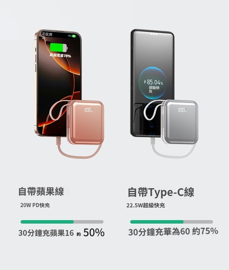 11分鐘前【🎁雙十二聖誕狂歡慶】A-mego AB100 MINI-2 超輕巧自帶雙線行動電源, 可支援3組設備充電,超輕巧187g,LED數字顯示器,適用各種裝置 蘋果筆電,手機平板,遊戲機,風扇,連接20W以上充電器可同時充放電 - 【🔥雙12限時開團】STARSKY 掌心美型自帶雙線快充行動電源✨加碼再送掛繩充電線 3入組僅需NT$1580