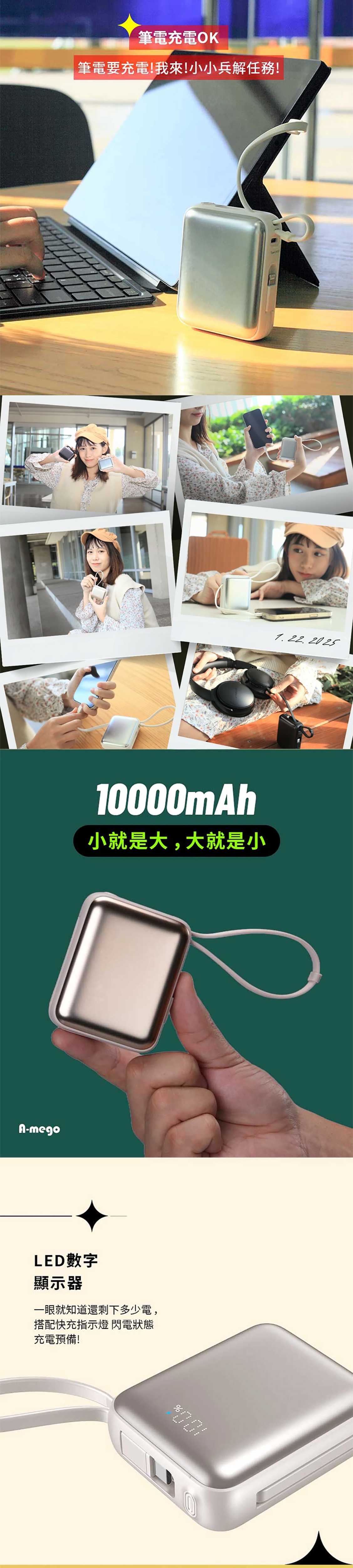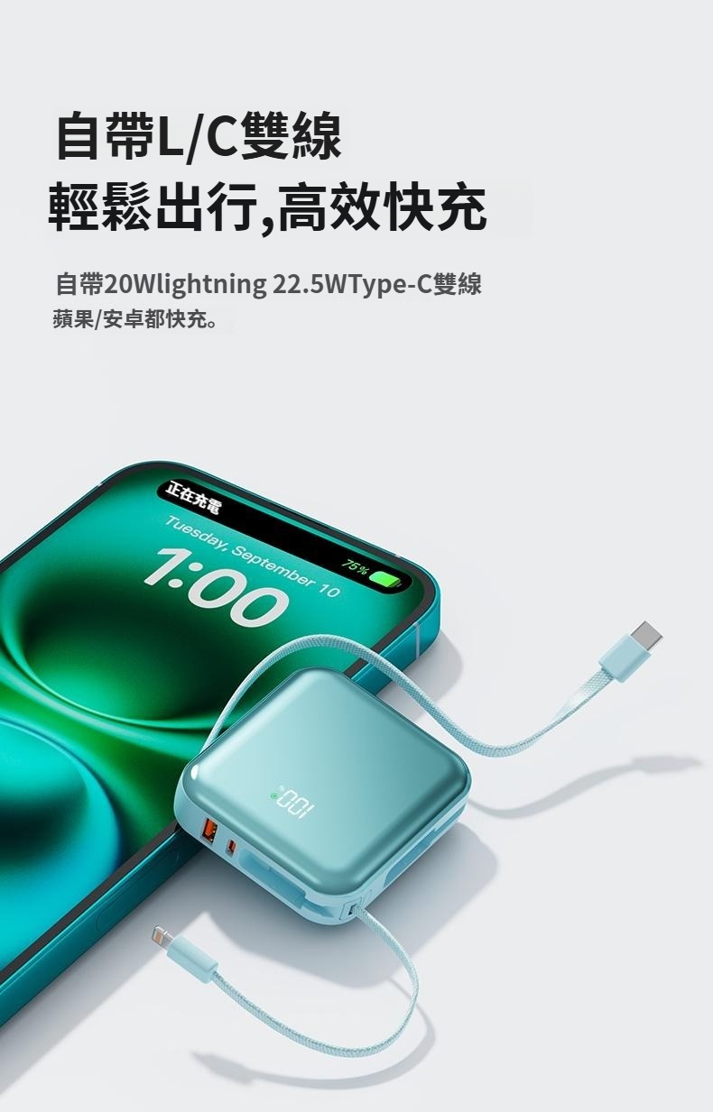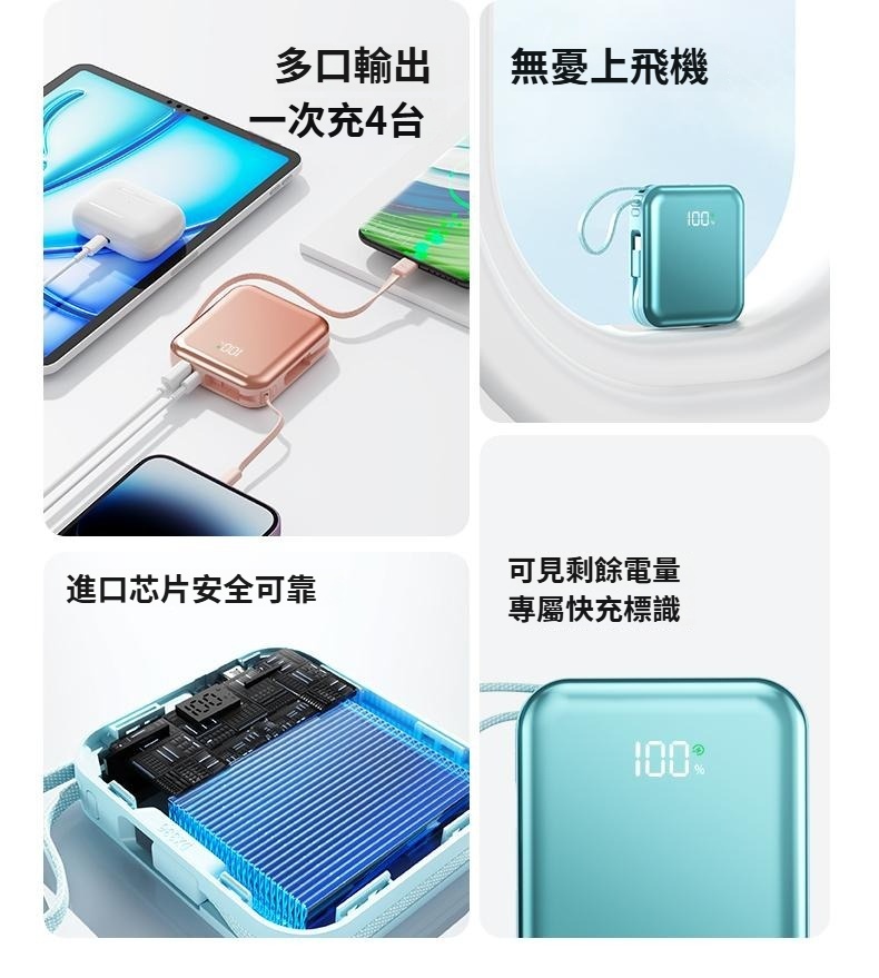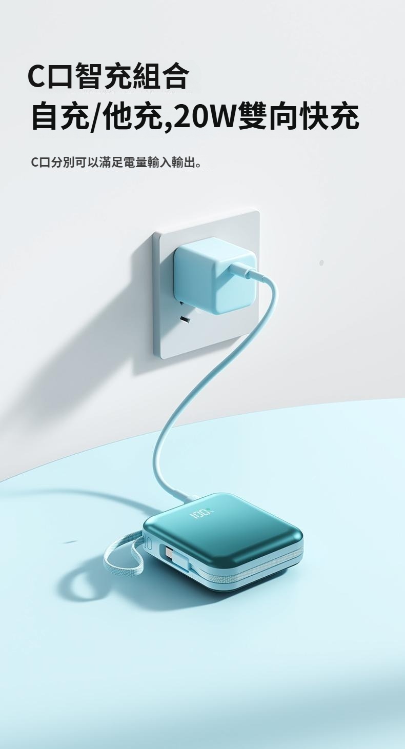 15分鐘前【🎁雙十二聖誕狂歡慶】A-mego AB100 MINI-2 超輕巧自帶雙線行動電源, 可支援3組設備充電,超輕巧187g,LED數字顯示器,適用各種裝置 蘋果筆電,手機平板,遊戲機,風扇,連接20W以上充電器可同時充放電 - 【🔥雙12限時開團】STARSKY 掌心美型自帶雙線快充行動電源✨加碼再送掛繩充電線 1入組僅需NT$1080