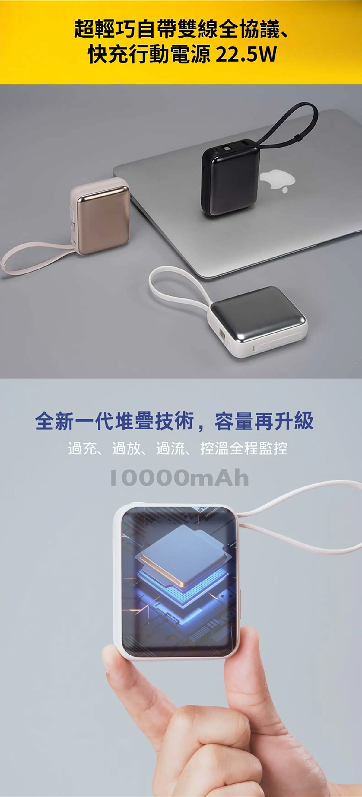 半小時前【🎁雙十二聖誕狂歡慶】A-mego AB100 MINI-2 超輕巧自帶雙線行動電源, 可支援3組設備充電,超輕巧187g,LED數字顯示器,適用各種裝置 蘋果筆電,手機平板,遊戲機,風扇,連接20W以上充電器可同時充放電 - 【🔥雙12限時開團】STARSKY 掌心美型自帶雙線快充行動電源✨加碼再送掛繩充電線 4入組僅需NT$1880