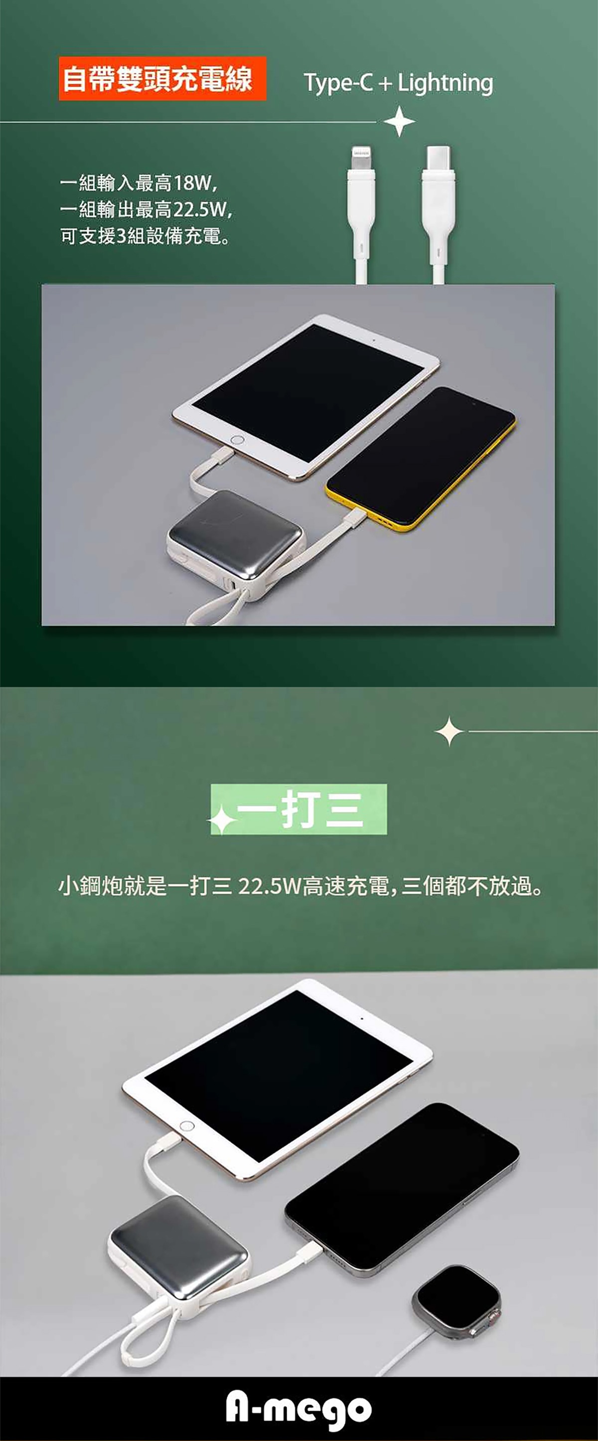 半小時前【🎁雙十二聖誕狂歡慶】A-mego AB100 MINI-2 超輕巧自帶雙線行動電源, 可支援3組設備充電,超輕巧187g,LED數字顯示器,適用各種裝置 蘋果筆電,手機平板,遊戲機,風扇,連接20W以上充電器可同時充放電 - 【🔥雙12限時開團】STARSKY 掌心美型自帶雙線快充行動電源✨加碼再送掛繩充電線 2入組僅需NT$1380